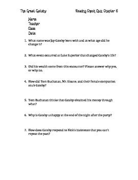Read Online Chapter 6 Great Gatsby Questions Answers Doc